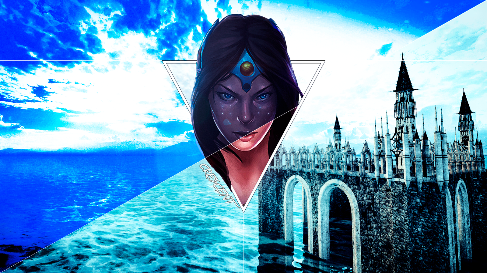In that opened light a shape resolved—three bright edges holding a stranger’s face. Night-kissed skin, constellations freckled across her cheeks, a crescent set at her brow like a tide caught in metal. She studied me with the certainty of a star chart, as though she had been expecting me ever since the first wave learned my name. Some part of her was mirror, some part omen; when she breathed, the sea at my back answered.