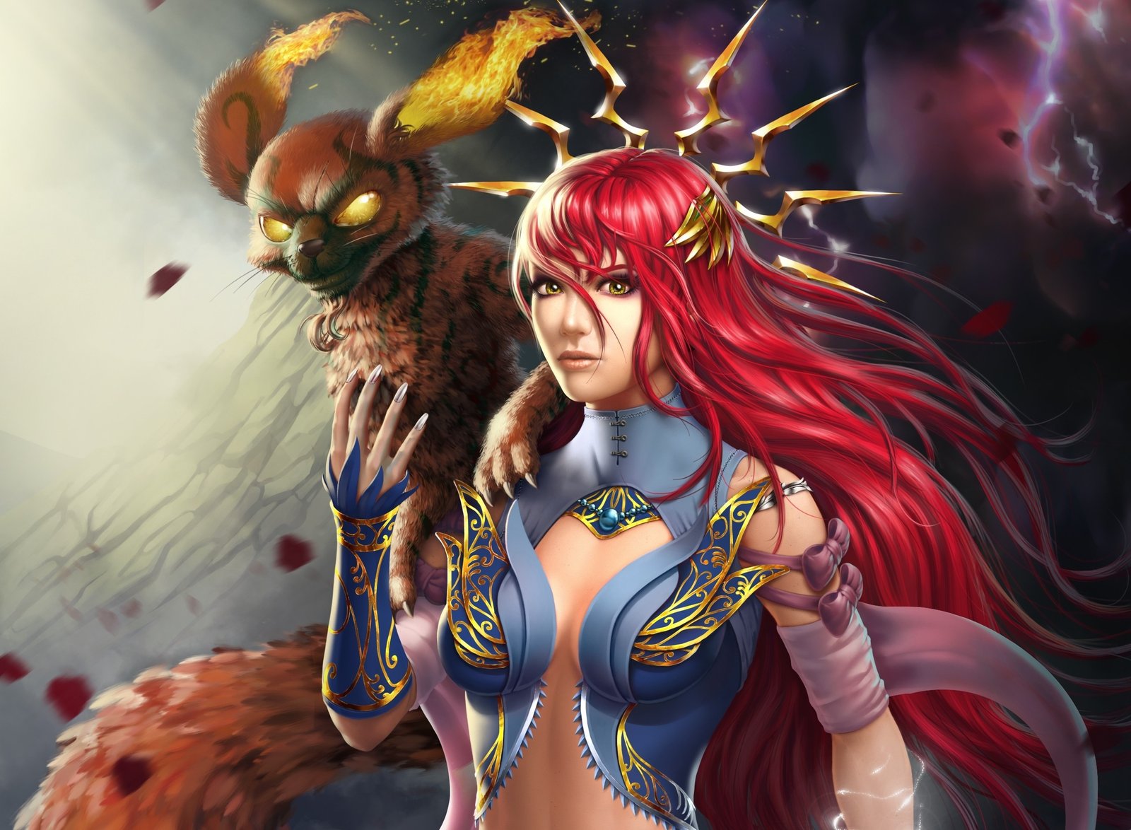 The night had the color of a healing bruise, and the field below was stitched with broken flags and swords left standing like thorns. She waited at the top of the black steps, a figure out of frost and brass: white coat trimmed in gold, cape stirred by a saltwind that had strayed far from any sea. Her hair, a flare of wild rose, refused the darkness; the emerald in her sword’s hilt caught the scattered starlight and held it like a secret. Blood scalloped the edge of her hem, but her stance was all poise—one hand at her belt, one on the promise of steel.