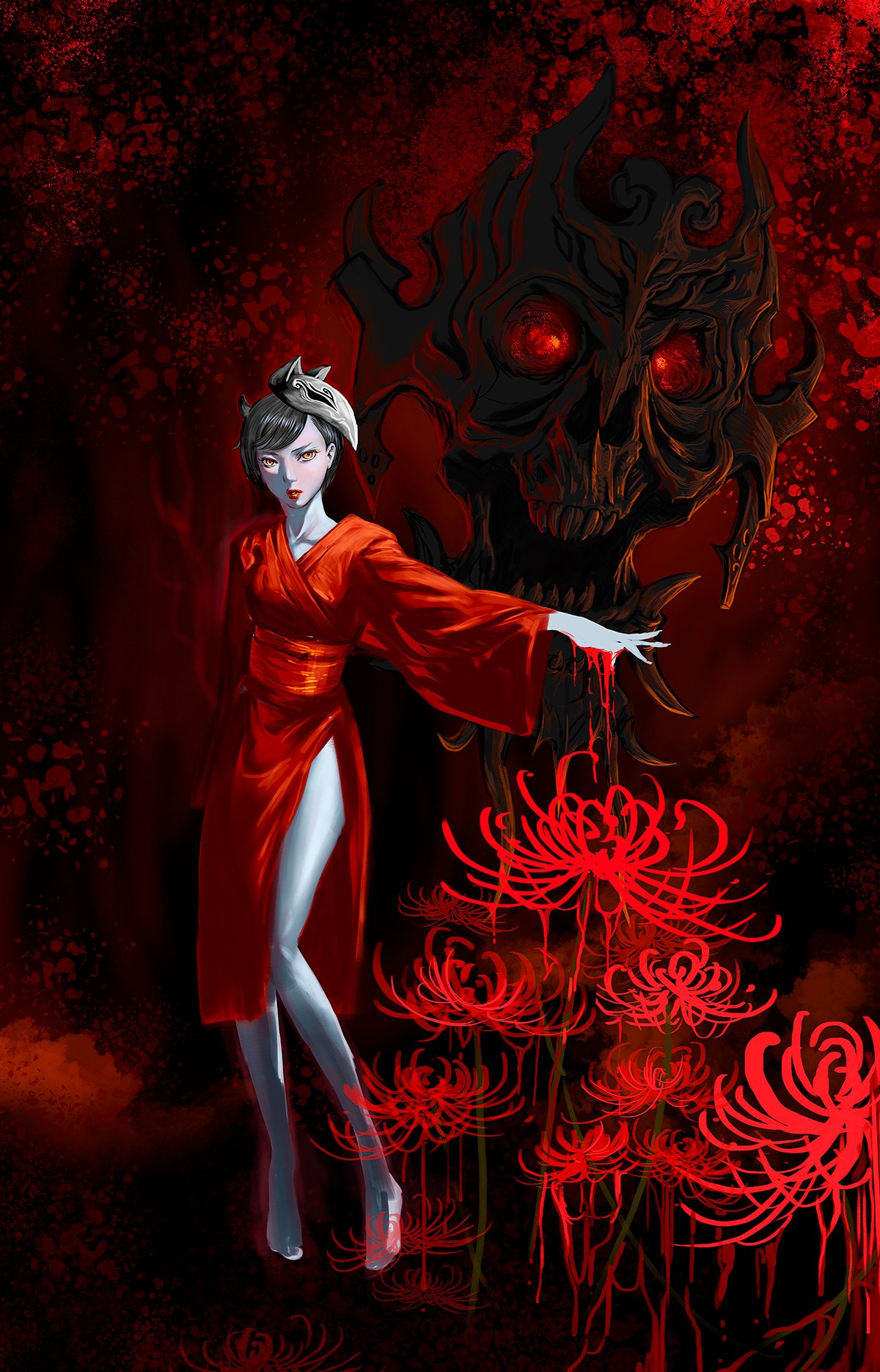 Behind her, a shadow had learned the shape of teeth. Its eyes were furnaces that remembered every name spoken in anger, every promise left to sour. It clung to the edges of her steps, tasting the earth where she had passed, waiting for weakness, for a tremor, for the smallest surrender. But the woman’s hand hovered above the lilies, and red dew slipped from her fingers to the blossoms below, and the blossoms did not wither. They listened.