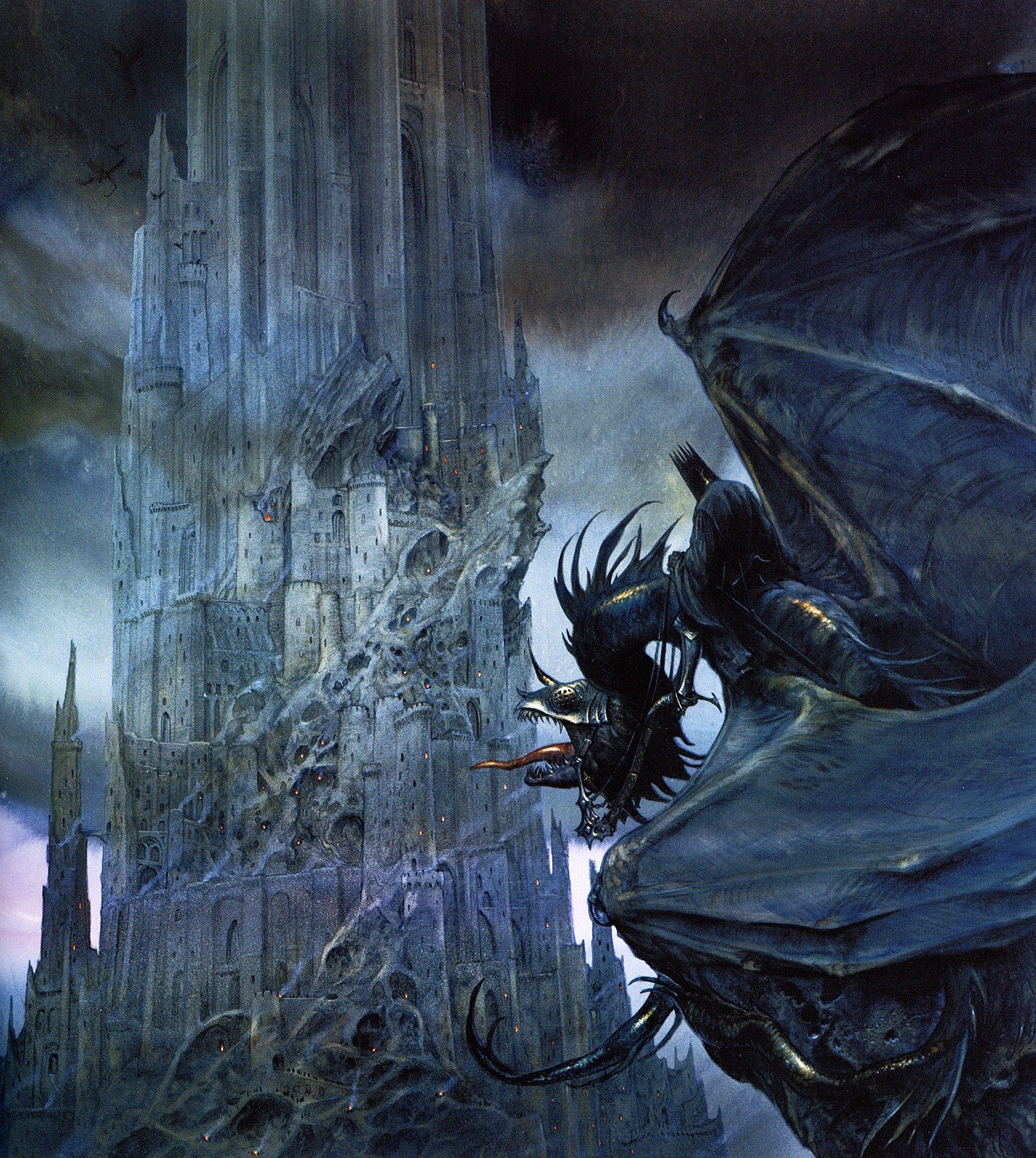 From the storm’s underwing came the cantor of ruin, armored in shadows, astride a bat-born leviathan whose tongue tested the cold like a diviner’s wand. They circled the tower and listened to its whispers, counting the lit windows like notes on a stave. In those cavernous galleries, monks and war-wrights had once caged comets and bottled night; now only the wind kept the archives, and it sang through organ-pipes of broken buttress and bone.