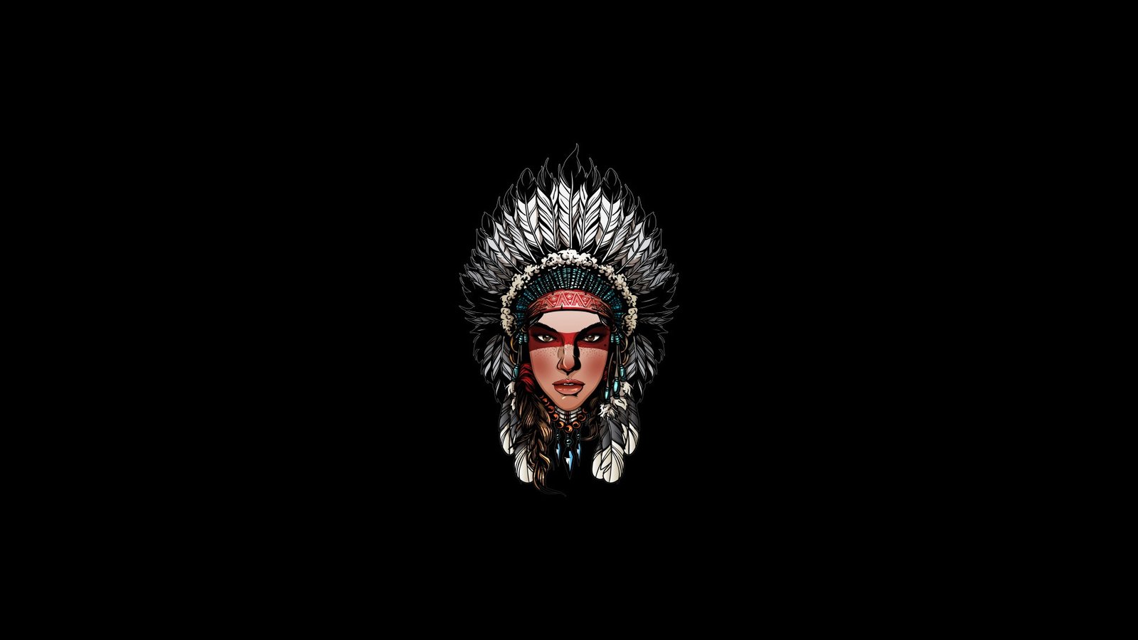 From the hush of a starless field, a face rose like an ember refusing to die. Feathers, pale and dark as winter sky, crowned her brow; a single band of red crossed her gaze, an oath painted in silence. She stood in the center of the night the way a cairn stands in an unmarked land—proof that someone has been here, and that someone will return.