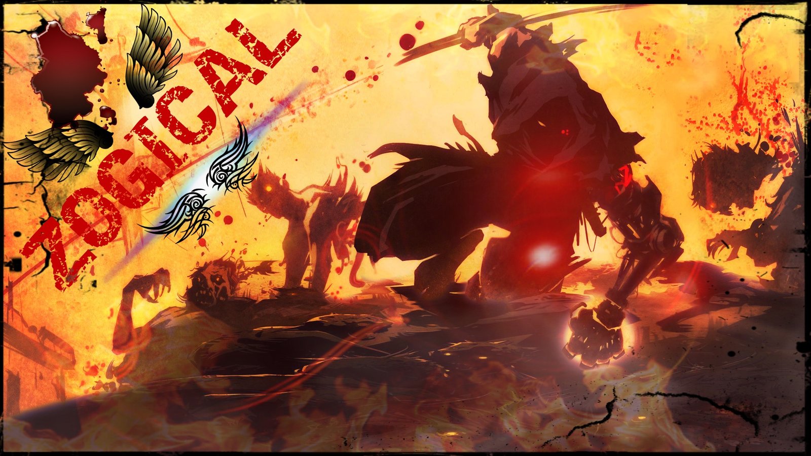 Lanterns swung like patient moons over a street that had forgotten how to sleep. Ash from spent fireworks drifted in slow constellations, and through them moved a figure in crimson and ivory, a spear balanced across his shoulders like a promise he could not put down. Gold circlets hugged his coat and a pale scarf trailed behind, catching sparks as he cut a path through the festival’s afterglow. Someone had painted three words on a banner and left them unfinished—End of a gruesome—then the paint ran out, or the courage did.